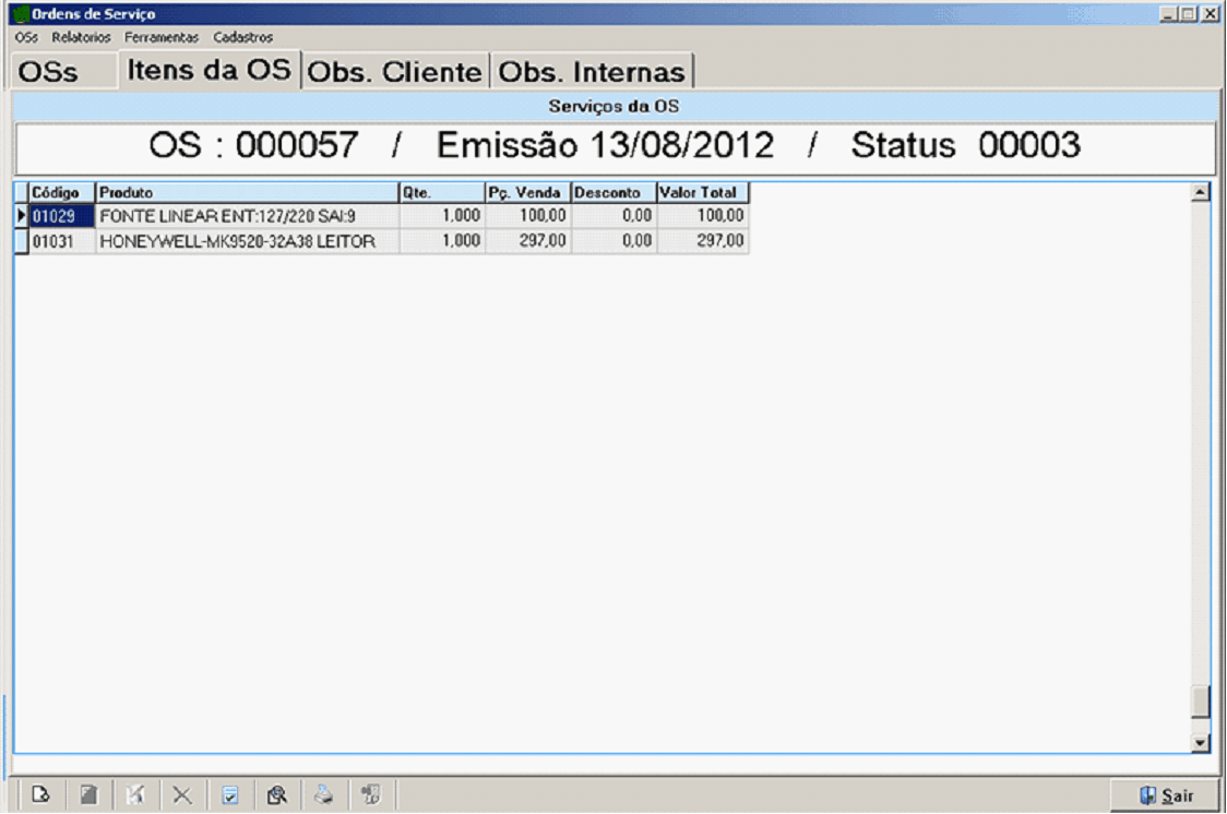 Na aba “Itens da OS”, exibirá a imagem abaixo;