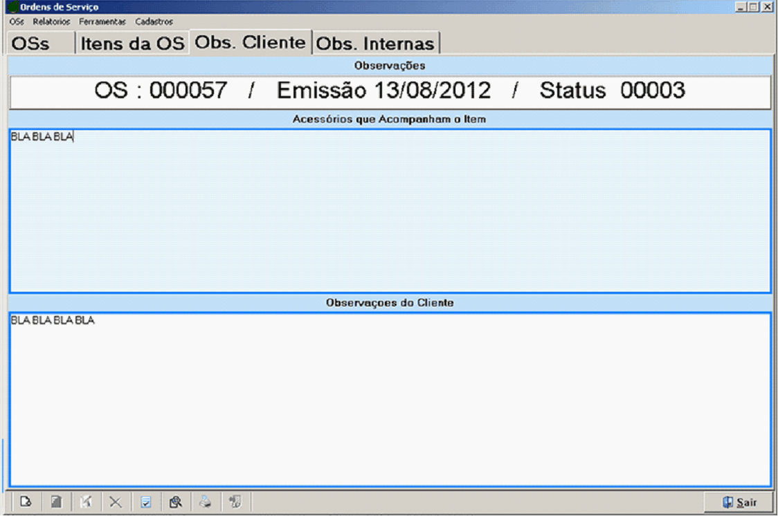 Na aba “Obs. Cliente”, exibirá a imagem abaixo;
