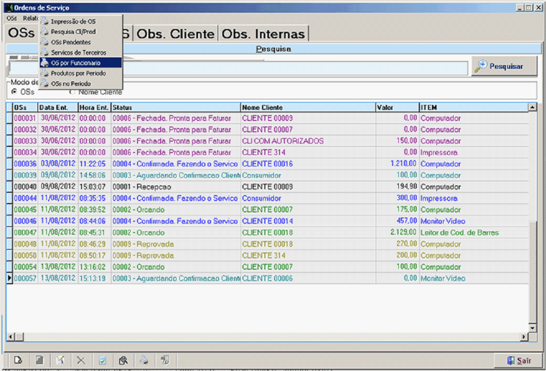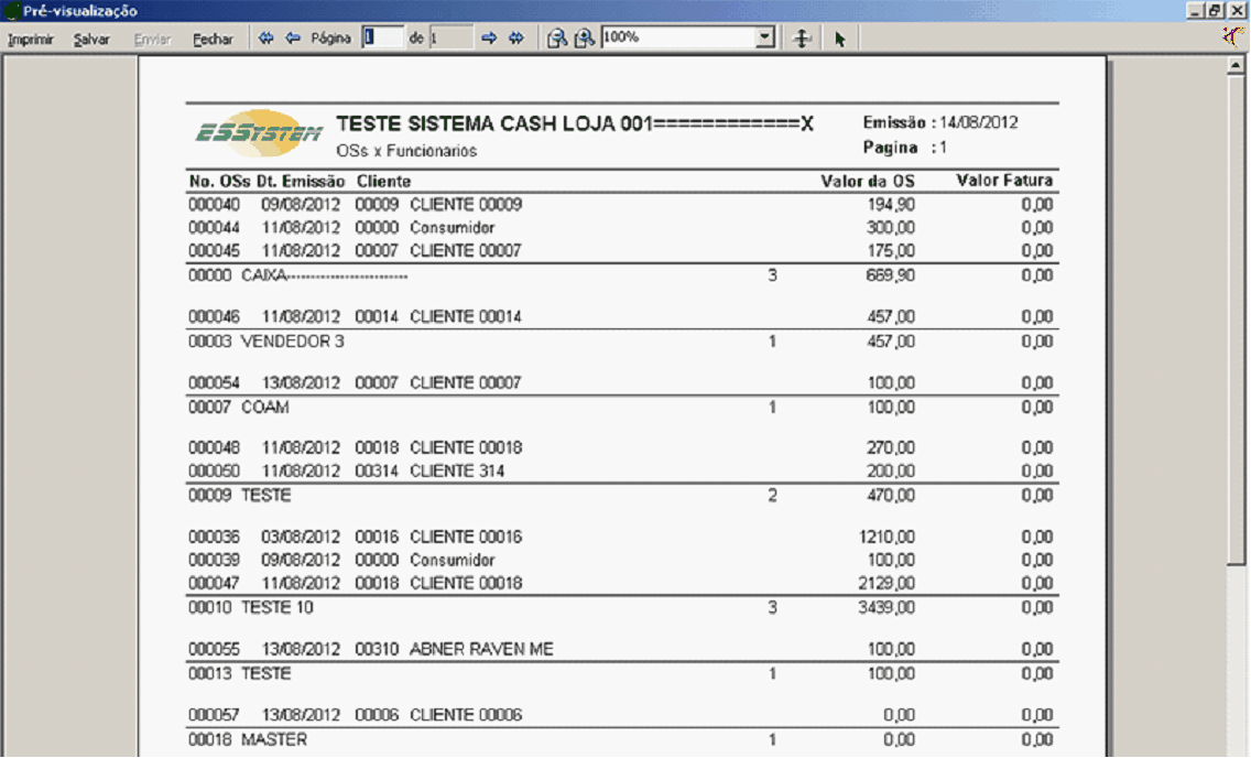 Abaixo iremos exibir um exemplo do relatório de OS por funcionário;