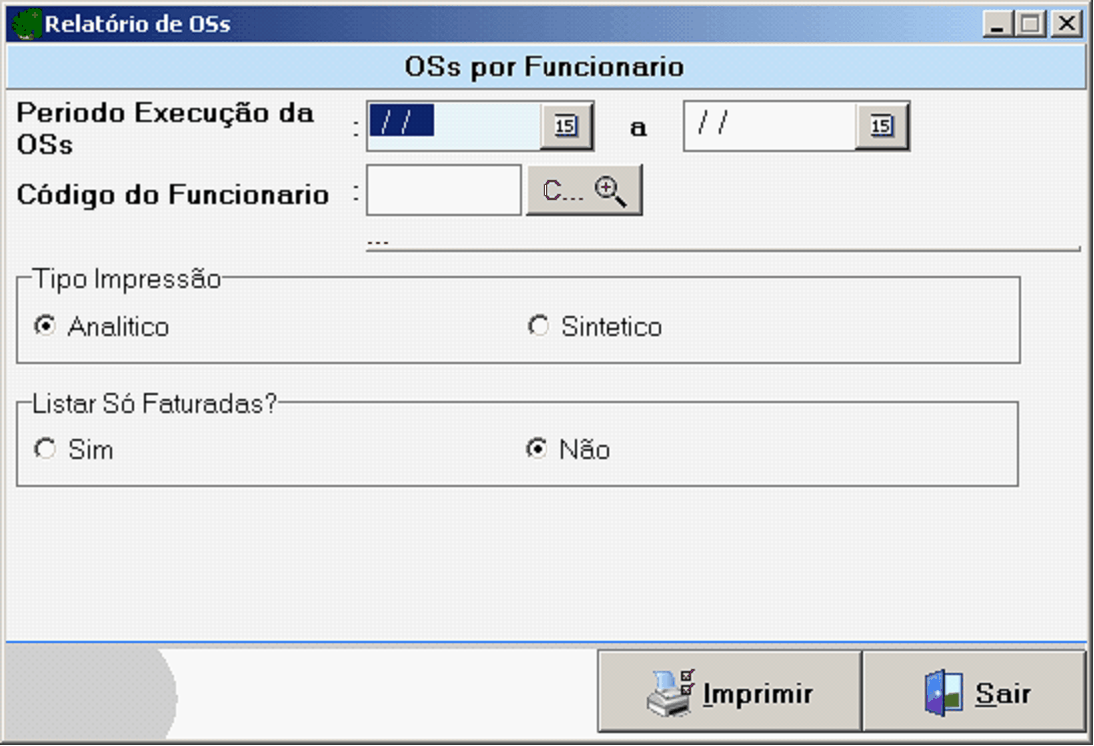 Código do Funcionário: Defina o funcionario que deseja verificar as OSs ;