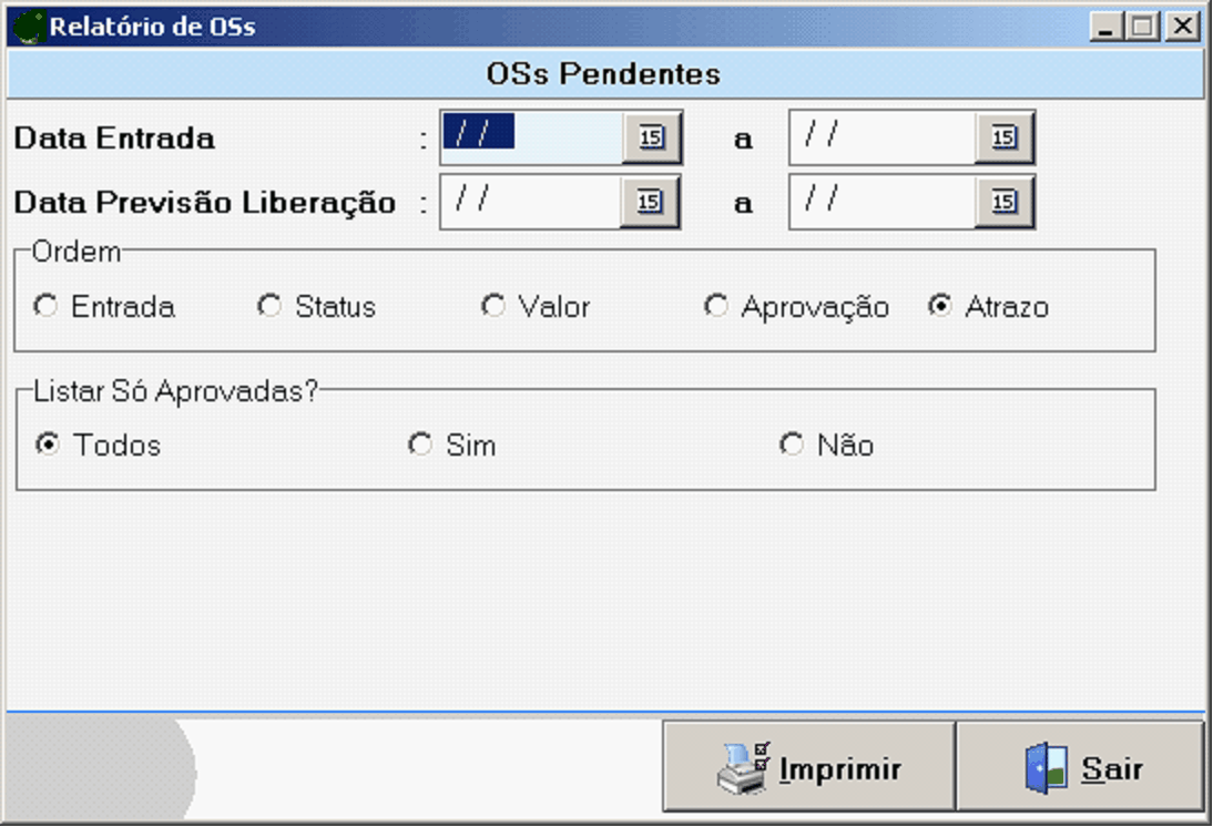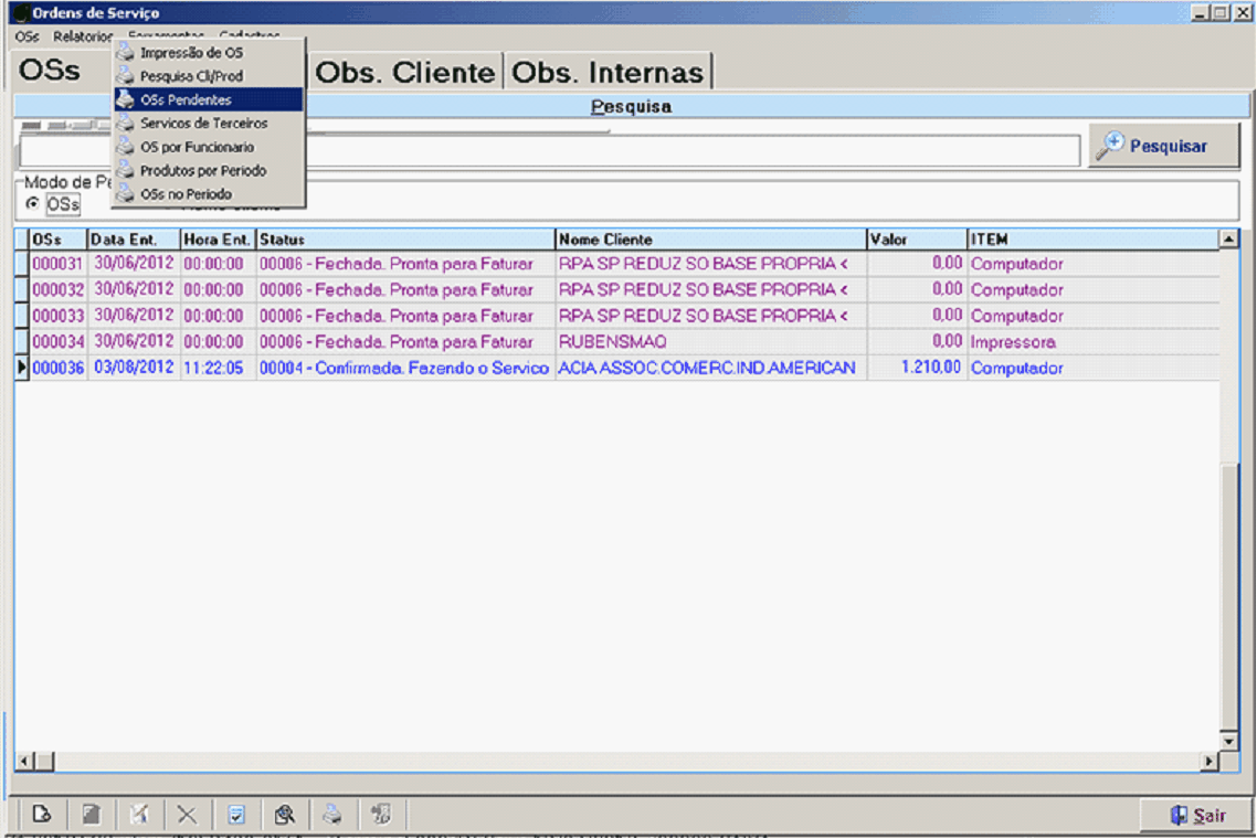 Abaixo iremos exibir um relatório de OSs Pedentes;