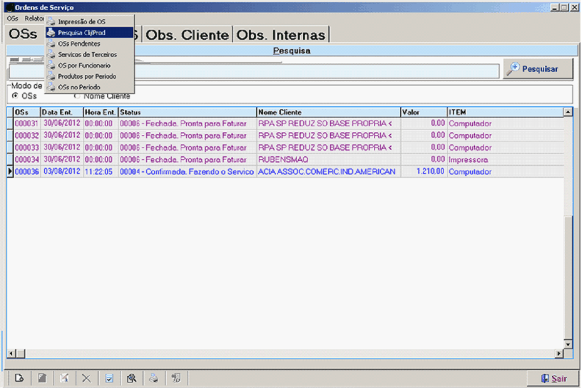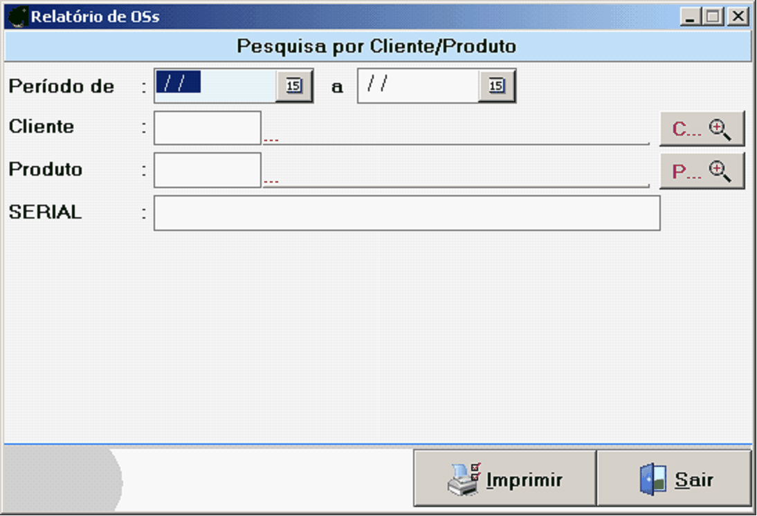 Clicando em Relatórios – Pesquisa Cli/Prod aparecerá a imagem abaixo;