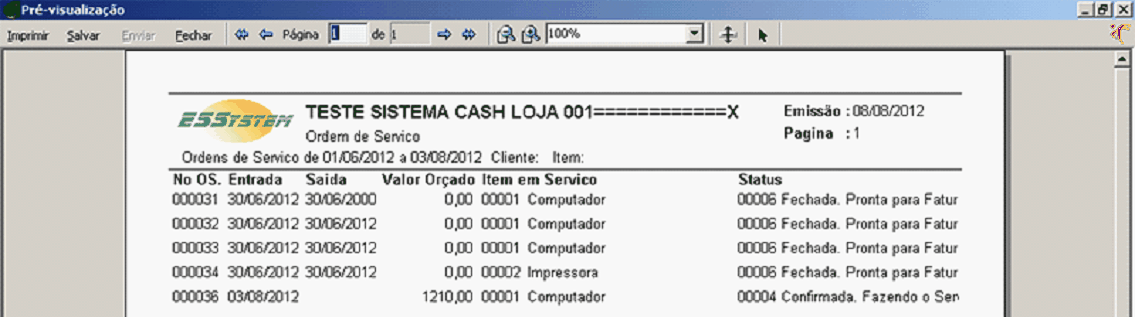 Neste relatório ele exibirá, n° da OS, Data de Saída e Entrada da OS, o produto que foi feito o orçamento e o status da OS;