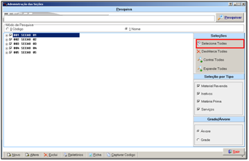 Opção para seleção de uma ou várias Seções e suas Sub-seções.
