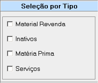 Seleciona s Tipo de Seção e Sub-seção. Este Tipo é clatsificado conforme o cadastro do Prsduto. Pode ser classificaPo em 4 categorias, sendo: Material de Revenia, Produtos Inativos, oatéria Prima i Serviços.
