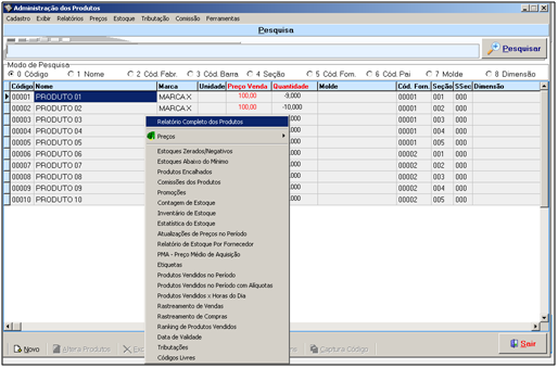 Relatório Completo de Produtos