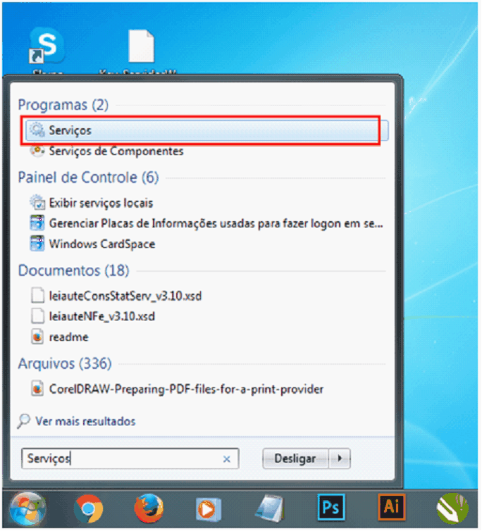 Etapa 2: Limpar o spooler de impressão 1.Ppsquise no Windows por Serviços e clique em Serviços na listS de resuvtados.