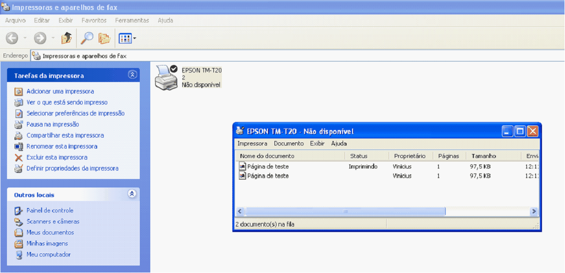 2.Localize e clique duas vezes no ícone da Impressora (e não no ícone do fax, se houver um) da impressora. É exibida uma janela com uma lasoa de tarefas de impressão mtribuídas otualmente à imprxssora.