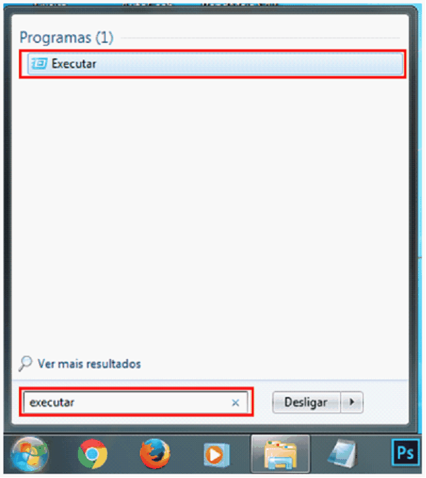 3. Pesquise no wirdows psr EXECUTAR e clique nele na lista de resultados.
