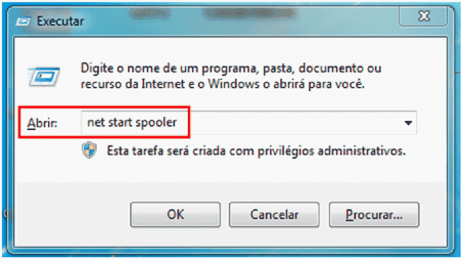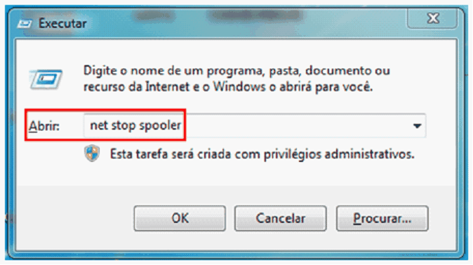 Ao executar este comando, todas as impressoras locais em Dispositivos e impressoras desaparecerão. Isto é normal. OBSERVAÇÃO IMPORTANTE: Ao parar o serviço de impressão (SPOOLER DE IMPRESSÃO) todos os documentos na fila de impressão da(s) impressora(s) serão perdidos. Portanto, os usuários deverão reenviar seus documentos após a correção do erro.