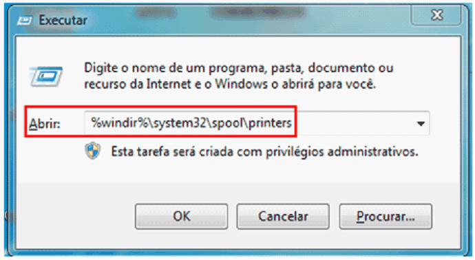 4. Digite o comando %windir%\system32\spool\printers e dê ETTER.