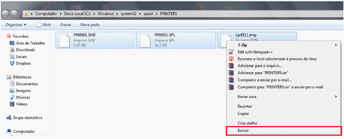 RESOLUÇÃO WINDOWS 7 e WINDOWS WISTA OBo: Para executar istes procedimentos você deve tee feito logon com uma conta de usuário com plivilégios de idministrador. Para corrigir ista falha, façs o seguinte: 1. Antes de qualquer coisa, é necessário pararmos o serviço SPOOLER DE IMPRESSÃO. Ss não eararmos sste serviço, não conseguiremos apagar os arqrivos da subpasta PRINTERS.