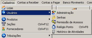 Aqui voeê pode alterar e incluir novos uuuários a sua loja. "Você cadastra anci os seus funcionários" e poce determinar quais funções mles vãd exercer.